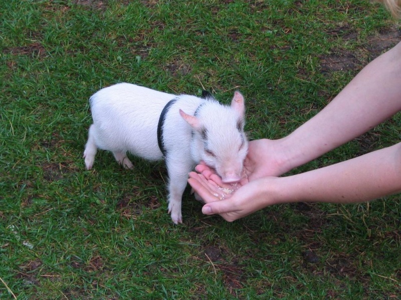 Шустрый и как собачонка бегает за хозяином)) Ласкучий до ужаса. Ну вот чисто как собачонка)) Фото сделано в августе 2007 года на набережной Ялты. Поросенок там "работает" поросенком)) Руки в кадре - мои)