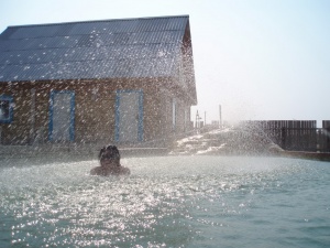 там реальные фонтаны. )))))) и можно пить воду, можно в ней купаться. А горы просто как на этикетке этого самого напитка. Щас фонтана фотку выложу.