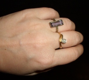 А мне нравится, когда багет в кольце стоит поперек пальца...:)