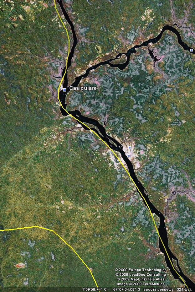 Касикьяре. Хрестоматийный пример бифуркации. Но она маленькая, может быть и не подписана на карте)