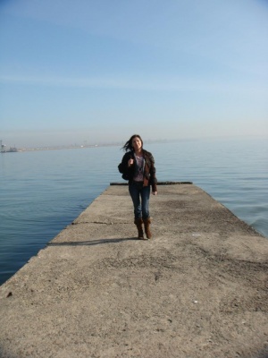 Девушка, идущая по пирсу?