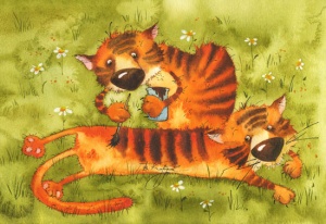 нам ещё тигра дали и мы вдруг подумали, что наших кошек вполне так можно нарядить на НГ тиграми...будет пркольно...