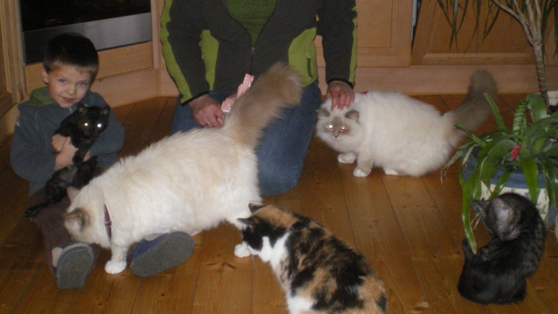 А гляньте, каких котов мне сейчас сестра прислала :-))) Почти что тигры типа :-)) На переднем плане трехцветная кошка - приехала из России с ней, старушка. Отъелась на немецких йогуртах-то :-)))