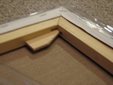 шпонка ставится в угол!!!!Ты неправильно ставишь...и..самое главное..сначала собирается рамка и только после ЭТОГО натягивается холст!!!!