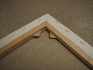 Клинья нужны для натягивания холста в дальнейшем (если холст ослабнет): немного постучал, клинышки войдут глубже, подрамник раздвинется, холст натянецца.
