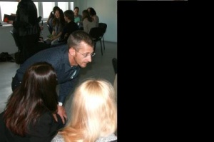 Я фотки нашла с семинара - я там как раз только спиной с Йоахимом, но волосы в новой прическе, типа, видно хорошо.