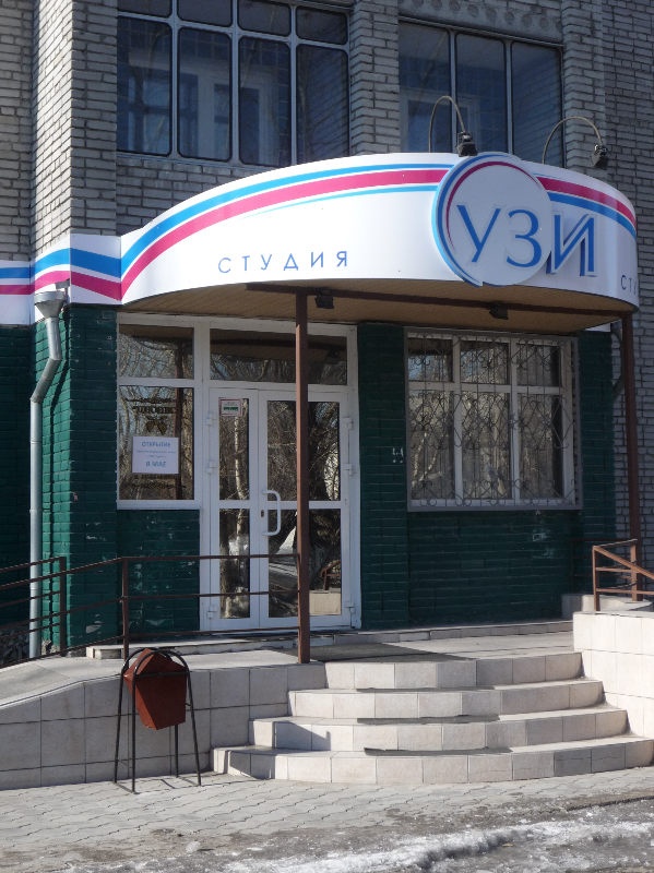 я два раза ещё смотрела (выпалила как на духу). Что поняла я? Там раньше было-что-то написано, типа "Студия Три". Сверху прибили другую вывеску УЗ (Ультразвук Здесь). И получилось очень красиво - студия УЗИ. Художественное обследование плода. Мастера высшей квалификации. Гарантии.