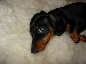 Это такса? Я профан, конечно, в породах. Но была у меня одна знакомая такса, после общения с которой я сильно зауважала их за интеллект и музыкальность. Она реально умела петь.
