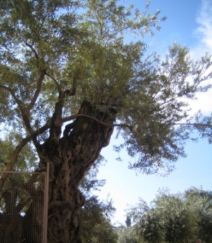 Это одно из могучих и прекрасных оливковых деревьев в Гефсиманском саду Иерусалима, что у подножия Масличной горы, считающихся одними из самых древних растений в мире, - у олив нет годовых колец, поэтому сложно это однозначно подтвердить или опровергнуть, но некоторые учёные считают, что именно этим оливам - почти 2000 лет.