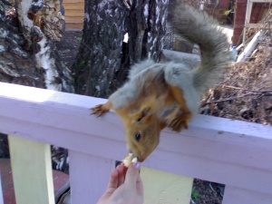 Только в выходные. И он сейчас болеет, солнечный ожог получил. Все думаю, оклемается ли?