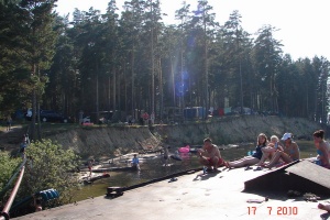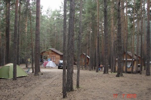 значит, ездили в выходные на базу. Собссно, наш домик крайний слева. В институтах Академа реально научнй коммунизм - домик в сутки 50 рублей, палатка - 10 руб. Катамаран - 15 руб/час. Лодка - 10 руб/час.