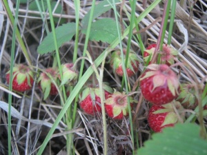 Горизонт на этой фотке безбожно завален. Потому что изначально завалился фотограф) Так и лежал, среди клубник))