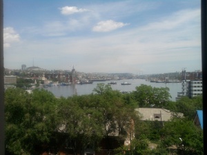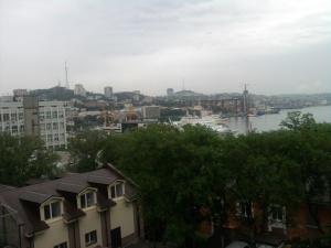 Вид из окна на бухту Золотой рог, а так же слух из окна звуков железнодорожного и морского вокзалов.