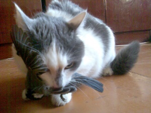 Моя любимая сволочуга постоянно охотится - как только еще с балкона не рухнет?))))