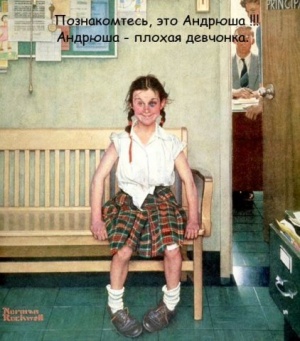на двери надпись - директор школы)) почему только девочка - руский Андрюша, непонятно))