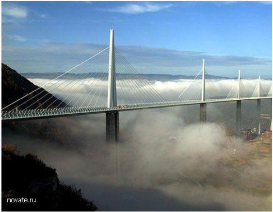 Возвышаясь почти на 350 метров над долиной Карового озера в Южной Франции, находится самый большой подвесной мост в мире. Проезжая по этому архитектурному чуду, кажется, будто взлетаешь. На создание моста , который выше Эйфелевой башни, ушло три года - Миллоу открылся в декабре 2004 года. Но наслаждаться живописными пейзажами долины с такой ошеломляющей высоты - удел не для слабонервных. Платформа Миллоу держится на 7 опорах и весит около 36000 тонн.