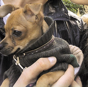 Размер лифчика - четвёртый. Размер собаки - 20 см в длину.