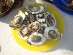 Устрицы вкусные, да. Их надо лимонным соком сбрызнуть маленько и ага. Она пишшит, а ты знай её в горловину пропихивай.
