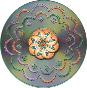 сначала сверлила...маленькой ручной дрелью...осталась от моего радиотехнического юношества....а потом проще стало шилом...трех-граным....а после цветными нитями перетягивает рисунок