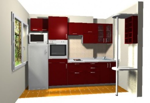 Я так представляю себе свою кухню: раковина, плита, между ними тумба, в противоположном углу большой холодильник, а посредине большой стол. На стене висит большой телевизор.