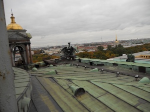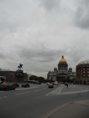 я значится скупнулся сегодня попил кофий и потопал до метро) там кароче доехал до сенной пощади, там пешком по узким улочкам...Питербурга и дошел до тыльной стороны иссакиевского собора.. проход на канонаду (верхний этаж сдания 100 р) 180 с лишним ступеней.. потом фотался наверху.. в общем собор меня не впечатлил, он размером приблизительно с наш оперный..