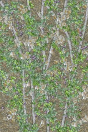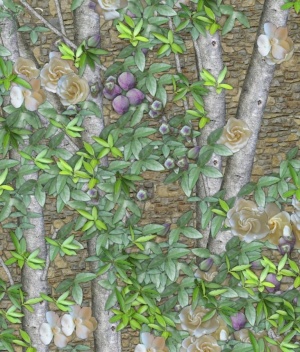 Деревья конопли с цветами в виде роз и плодами типа слив...