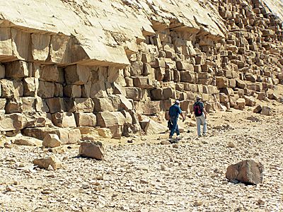 Тут не только перспектива, тут талант. Снята не вся пирамида, а её ма-а-ленький кусочек; идут две затерянные во времени фигурки, маленькие, тщедушные и сиюминутные на фоне огромного, потрёпанного веками колосса.