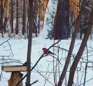 О! Снегирёк! Симпатишный... Люблю снегирей, они красивые.