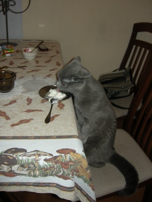 а наш ложку из блюдца зубами вытаскивает, если я оставила, сметану или творог накладывая - что б не мешала :-))