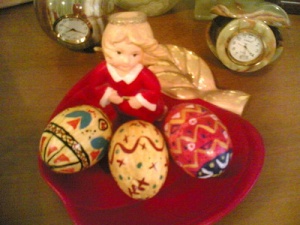 Клубки шерсти есть? Можно нитками яйца обмотать и так варить.