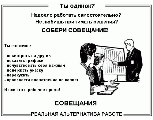 Да и совещаний, в самом прямом значении этого слова, нет.