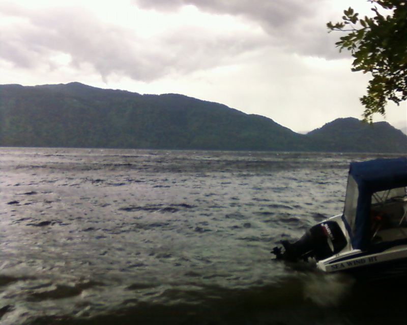 Для большего восприятия картинки: катер, корма которого видна, мотыляло у берега как щепку.