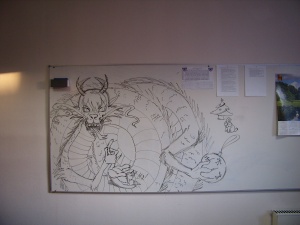 Однако, доска не простаивает. Приходит одна знакомая девушка, и рисует на ней. Да так рисует, что народ входит в помещение, и столбенеет, забыв, зачем пришли :-)