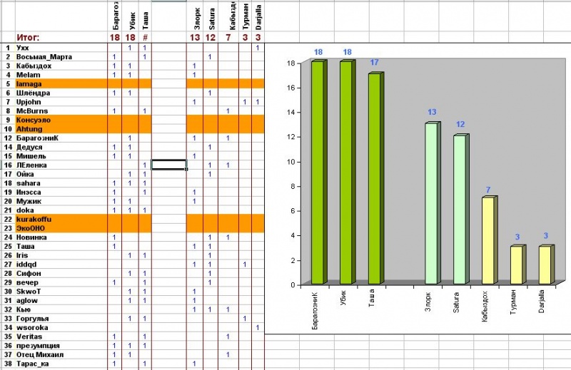 Да я, собственно, из-за Горгульи. Я думала, она прикалывается, а она сказала, что у нее есть основания голосовать за Турман. Вот я и спросила - может, я чего не вижу? Не понимаю?