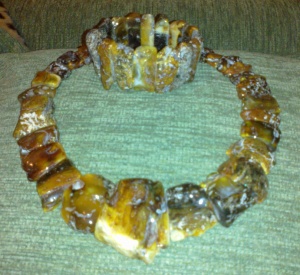 Из последнего, что я привезла для своей невестки: комплект из почти необработанного янтаря с естественными включениями. Примерно в натуральную величину.