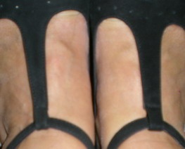 Вот... но на фотке видно почему-то хуже, чем в реальности. У левой и ремешок вокруг щиколотки тоньше, кстати.