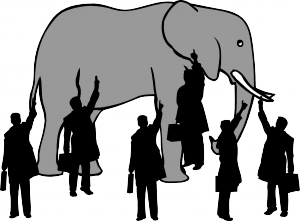я думала, что история про слона и слепцов очень выразительно свидетельствует о том, что каждый из них знает только СВОЮ ЧАСТЬ правды..., но при этом они ВСЕ ПРАВЫ... Вот если их части объединить, то м. б. получится хоть на чуть-чуть продвинуться...