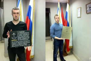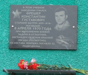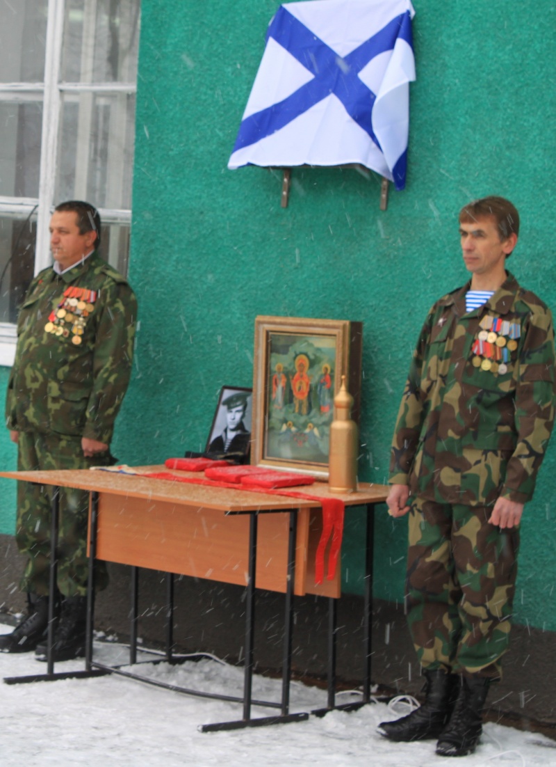 А вот такие доски у Юры на родине установили. Одна на школе, другая на сельсовете. Одну делали в Гремихе, из местного камня, другую в Петербурге из легкого корпса подводной лодки. Все это очень символично.