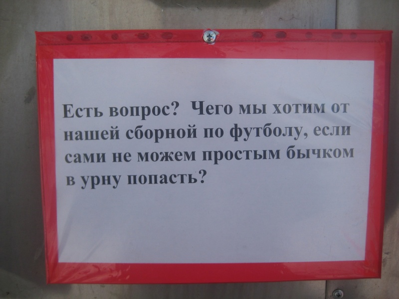 А нас в мужском туалете над писуаром висело...