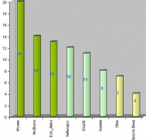 Нука заново по голосам разложи. А то что-то перед Ташей и Сифоной у нас с Бернсом по 11 голосов было, а теперь вон чо? Откуда взялися остальные?
