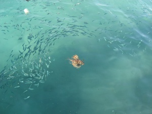 Рыба , шипы которой ядовиты. Видно, как мальки ее старательно опплывают.