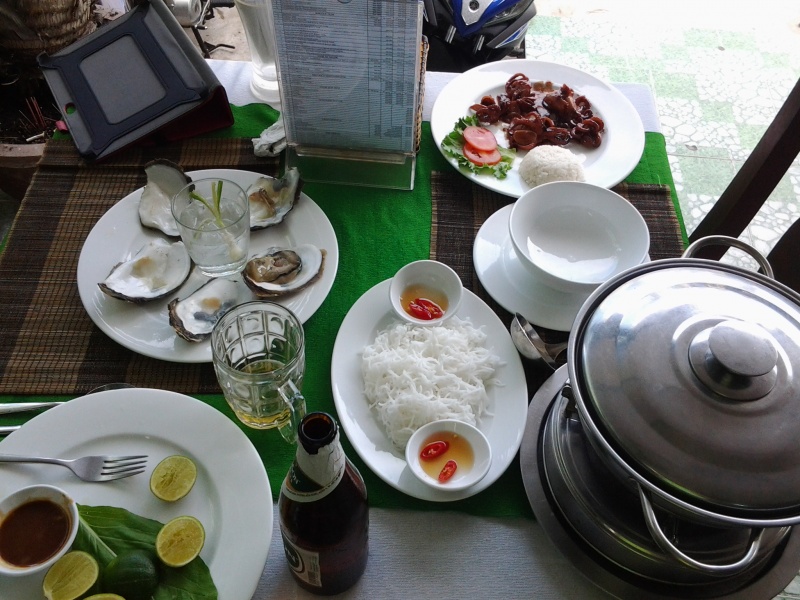 Ну нет эта еда с пивом стоит 500р. Но это правда из шикарного и на двоих. Устрицы дорогие 150000 донгов, а суп двоим объесться 200000 донгов. Так то салат на двоих 80000, суп 70000 тоже на двоих, огромная рыба 120000. Пиво в ссср 7000, в кафе от 13000