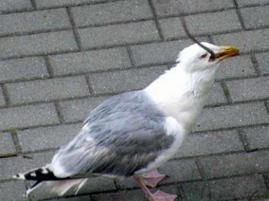 У нас похолодало до +11-13 градусов и в город потянулись не синички, а чайки. И они даже крыс жрут, оказывается и на людей нападают !