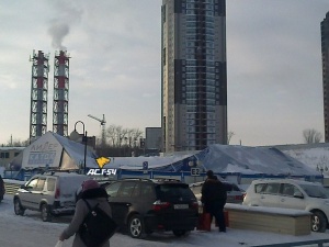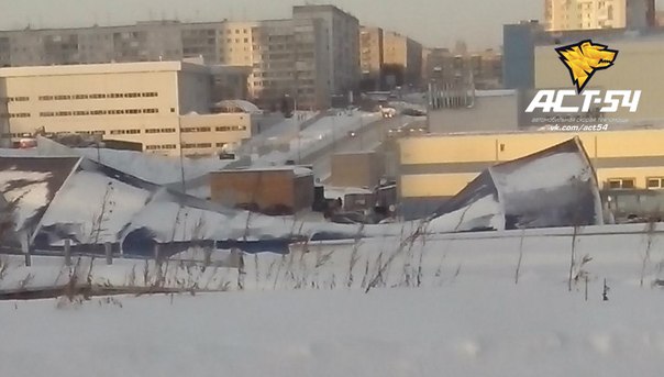 У недавно открывшегося на территории Сибирского Молла ледового катка «Лидер» под тяжестью снега рухнула крыша. Судя по всему, сегодня утром.
