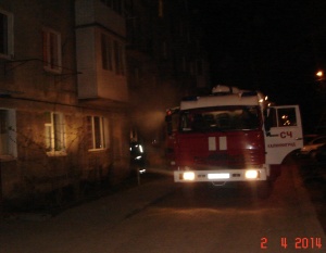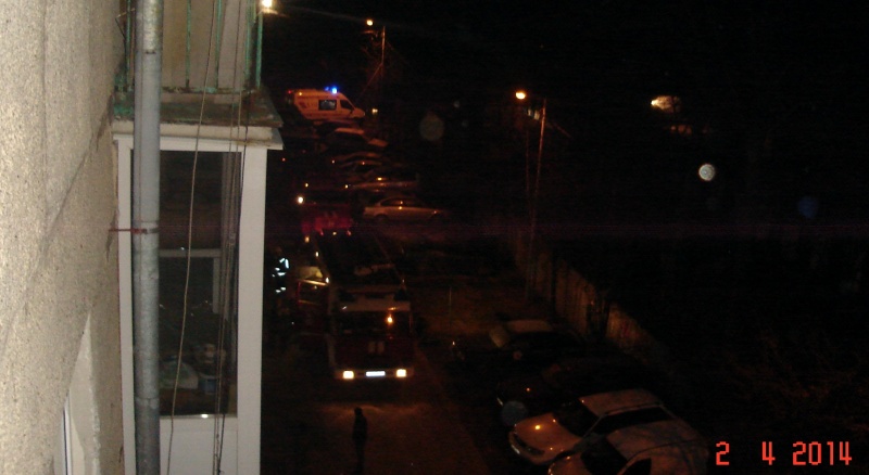 Загорелась квартирёшка на 1 этаже (там светится пожарный около окна), а весь подъезд у них был в дыму. Но пожарные приехали моментально, вот это плюс маленьких городков..