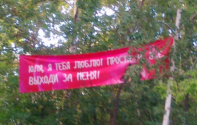 Это даже не надпись на асфальте, так что никому не мешает, я думаю. Повесил растяжку, снимет так же... думаю, уже завтра её не будет, поэтому поспешила снять на телефон, пока случай.
