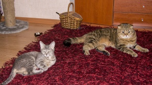Наша любит людей, верит им, и ласковая до... Безобразия. Ну, и наглая, как будто с голодного мыса. Ларс - аристократ, терпеливо ждет, когда эта дворняжка насытится, наконец, и даст ему пожрать. Безропотно ждет, наблюдая со стороны