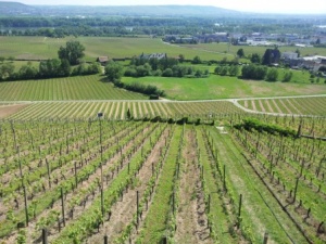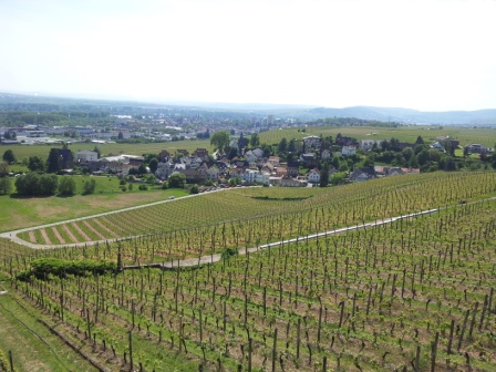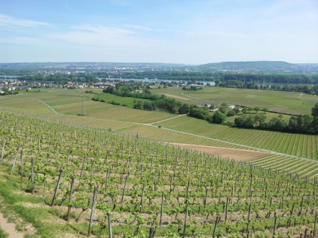 А сняла на видео, как мы ехали на пароме на машине, их знаменитый памятник, ооо, он просто грандиозный !!!, и виноградные лозы, и вид на Рейн с горы.Да, там красиво. Мне тоже понравилось в долинах Рейна... очень живописные места. А виноградники как по линеечке. Посмотрите, здесь совсем молоденькая лоза : )