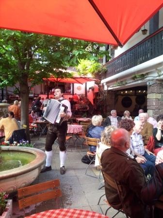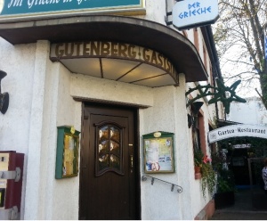 Это в Гонзенхайме, Heidesheimerstrasse, рядом с домом моей мамы. Ели всякое разное мясо и салат, запивали красным вином. Каким, фиг его знает, я не разбираюсь. Ну пьяненькие стали маленько.