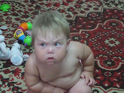 вообще-то это абсолютно нормальный ребенок))) это так получилась девочка просто на фото! я смотрела ее фотки в одноклассниках, она здоровая и симпатишная и эта единственная такая фотка так что не наговаривайте на ребетенка!!! Ее мама к этой фото сделала подпись из к/ф джентельмены удачи!))) так что)))